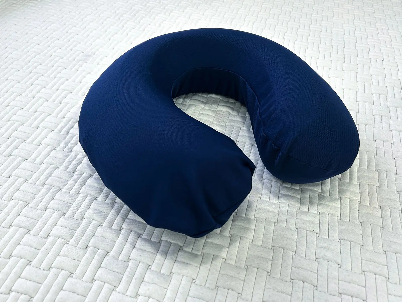 Collarín de viaje fabricado en viscoelástica de formulación específica y composición equilibrada, se adapta perfectamente a la forma del cuello y la cabeza, distribuyendo el peso de manera uniforme y aliviando la presión en los puntos de contacto. No solo mejora la calidad del descanso, sino que también ayuda a mantener una correcta alineación de la columna.