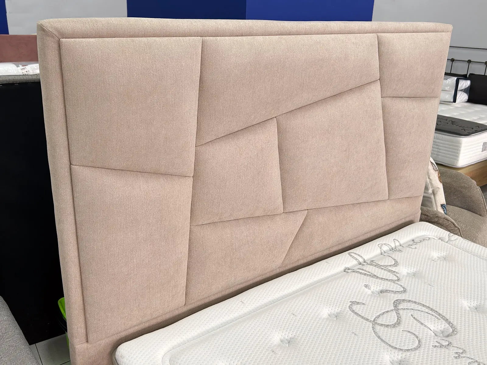 El cabecero Janine es una pieza moderna y distintiva que se destaca por su diseño innovador. Su estructura presenta una variedad de formas geométricas acolchadas, lo que le confiere un aspecto único y atractivo. Además, dispone de una amplia gama de tejidos, permitiéndote personalizar tu dormitorio para que sea un espacio acogedor y único, adaptándose a tus gustos y creando un ambiente cálido y confortable.