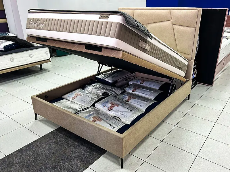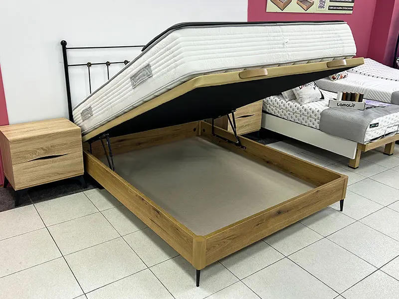 Este canapé abatible de madera con dos cajones frontales que te permite un almacenamiento más minucioso y la posibilidad a acceder a el sin necesidad de levantar la base por completo. Está compuesto por una cubeta de alta capacidad, dos cajones compartimentados y una tapa transpirable tapizada. Cuenta con dos tiradores de madera y un arquillo que sujeta el colchón para facilitar su apertura frontal.