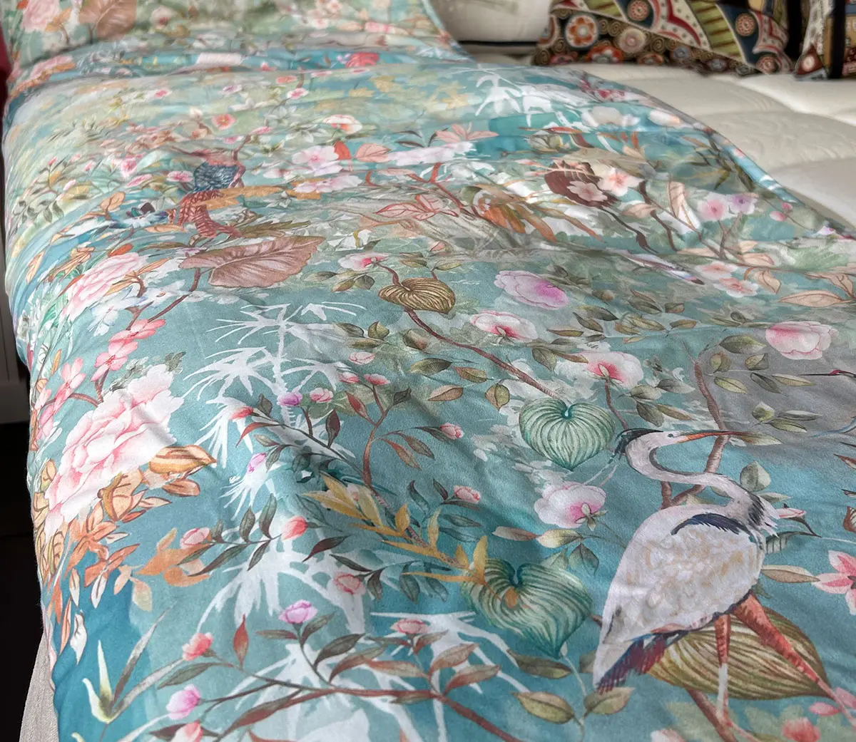 El edredón Lucentum de Encama es un auténtico cuadro para tu dormitorio. Fabricada con un 50% de algodón y un 50% de poliéster, es una opción de alta calidad que promete durabilidad y confort.