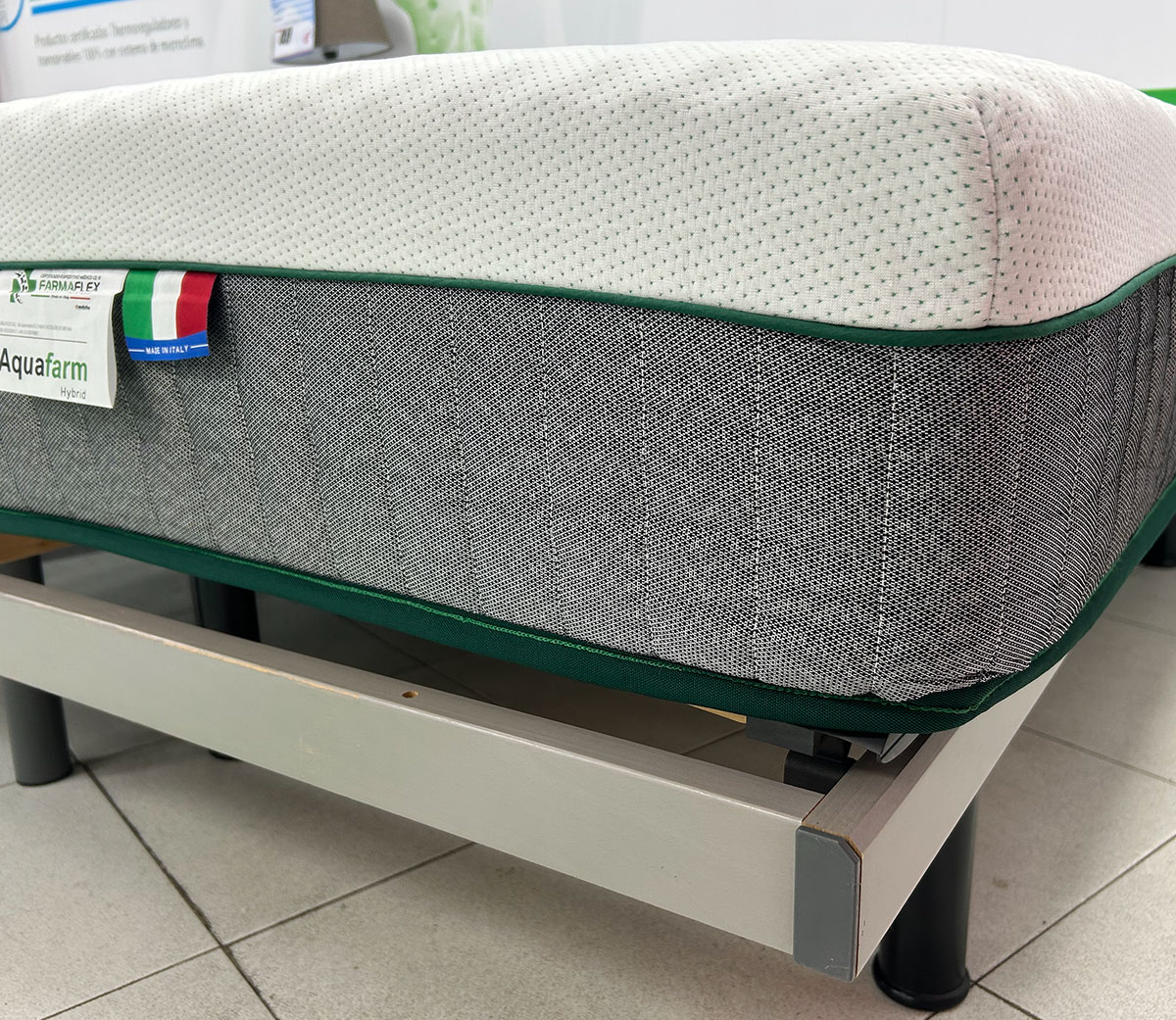 El modelo Aquafarm posee 600 muelles ensacados titanium, exclusivos cosidos en vertical con forma de panal, perfecto para la flexibilidad y adaptación del cuerpo, y con una inmejorable articulación para cualquier tipo de cama. Cuando juntamos en un área rectangular para formar un colchón con capas de viscoagua bugnata, creamos un sistema adaptable que permite que tu cuerpo esté es suspensión de manera natural sin posturas forzadas, especialmente para la parte de hombros y cadera y siendo totalmente antipresión.