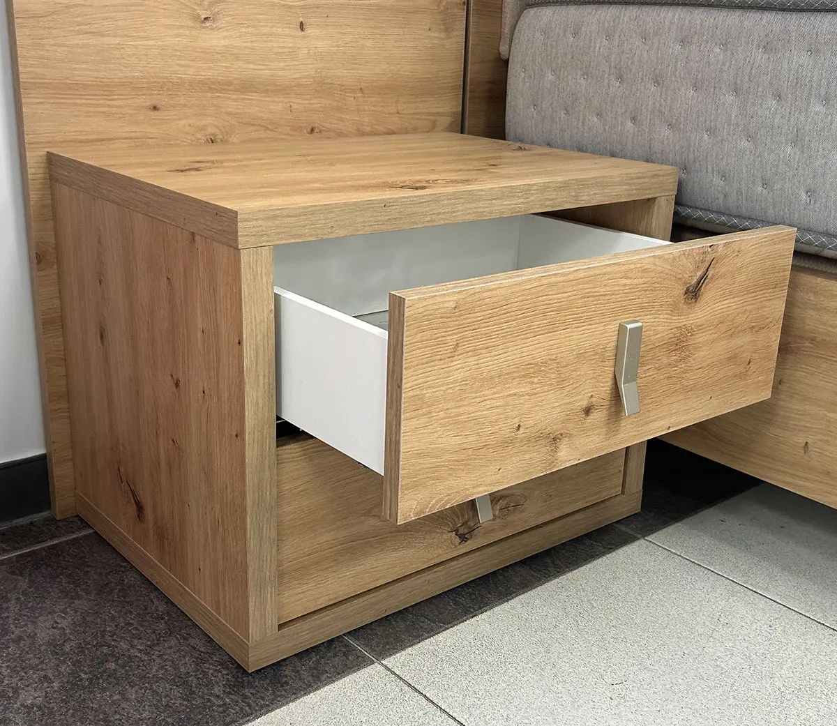 La mesita de noche Aloe es el complemento ideal para darle color a tu dormitorio, aportando un espacio extra de almacenamiento. Con patas, sin ellas, dos cajones, tres cajones, más de 5 opciones de colores de madera para elegir.